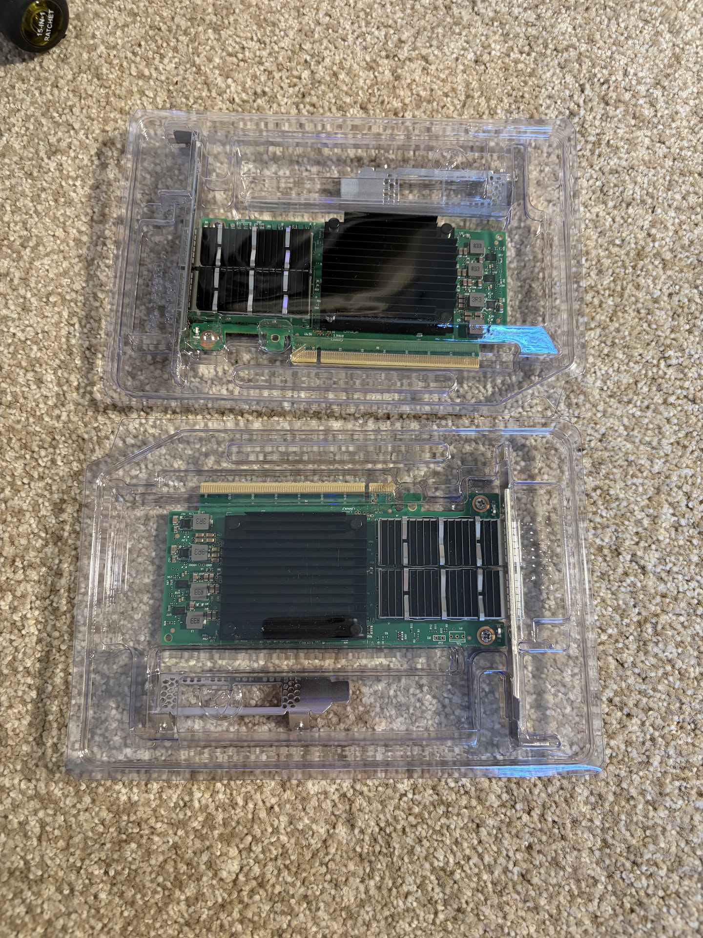 As with all things, I started by shopping around for an interconnect solution. I decided on 2x 100Gb Mellanox connectx-5 cards for a DAC connection between the two servers.